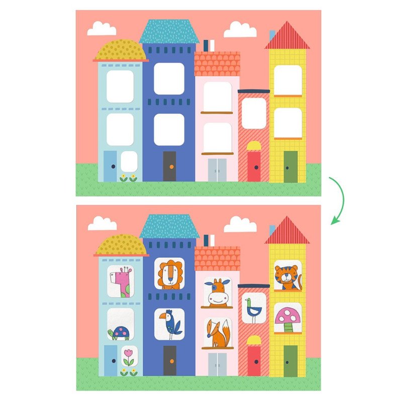Ευφάνταστη δραστηριότητα ζωγραφικής για παιδιά από την εταιρεία Djeco. Τα παιδιά μπορούν να εντοπίσουν πίσω από τα παράθυρα 30 διαφορετικά ζωάκια και να τα χρωματίσουν, δίνοντας ζωή στα διάφορα σκηνικά. Μια δραστηριότητα για παιδιά από 4 ετών, που βοηθάει στην λεπτή κινητικότητα, την συγκέντρωση και τον συντονισμό χεριού ματιού. Διαστάσεις συσκευασίας: 29,5 x 23 x 4 εκ.