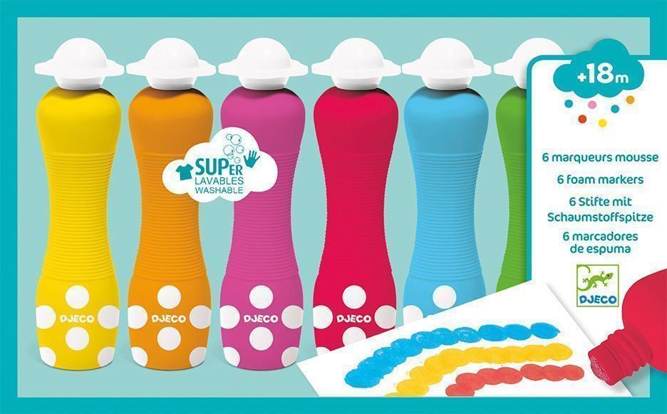 Kαλλιτεχνικές δεξιότητες και παιχνίδι αισθήσεων από νεαρή ηλικία με αυτό το πολύχρωμο σετ από 6 σωληνάρια με μαρκαδόρους αφρού.