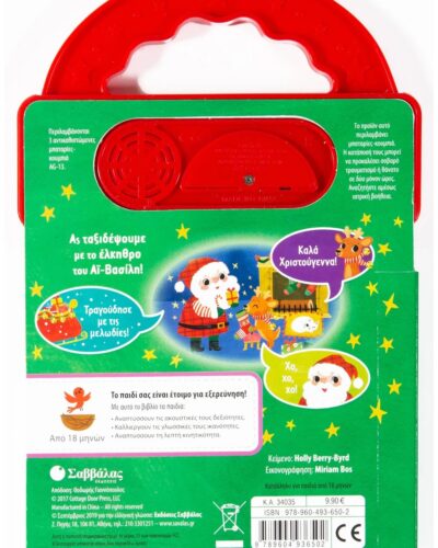 Ας ταξιδέψουμε με το έλκηθρο του Αϊ-Βασίλη! Διάβασε το βιβλίο, πάτησε το αντίστοιχο κουμπάκι και τραγούδησε τις μελωδίες. Καλά Χριστούγεννα! Το παιδί σας είναι έτοιμο για εξερεύνηση! Με αυτό το βιβλίο τα παιδιά: Αναπτύσσουν τις ακουστικές τους δεξιότητες. Καλλιεργούν τις γλωσσικές τους ικανότητες. Αναπτύσσουν τη λεπτή κινητικότητα