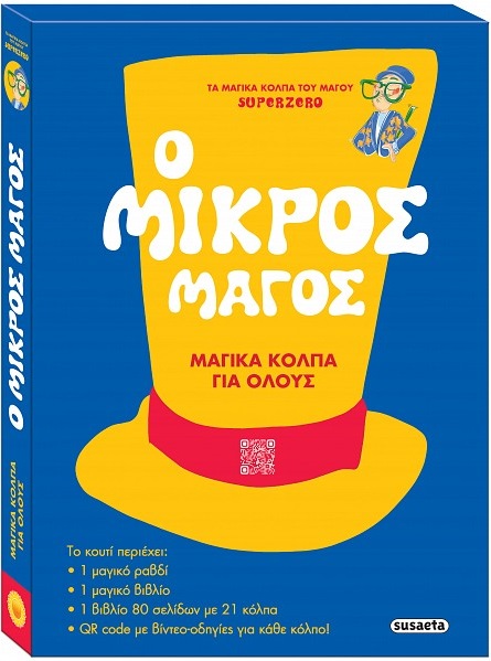 Το κουτί του Μικρού μάγου περιέχει: • 1 μαγικό ραβδί • 1 βιβλίο με λευκές σελίδες που χρωματίζονται μαγικά και μετατρέπονται σε όμορφες εικόνες • 1 βιβλίο 80 σελίδων με 21 κόλπα • QR codes με εκπαιδευτικά βίντεο και οδηγίες βήμα βήμα για κάθε κόλπο!