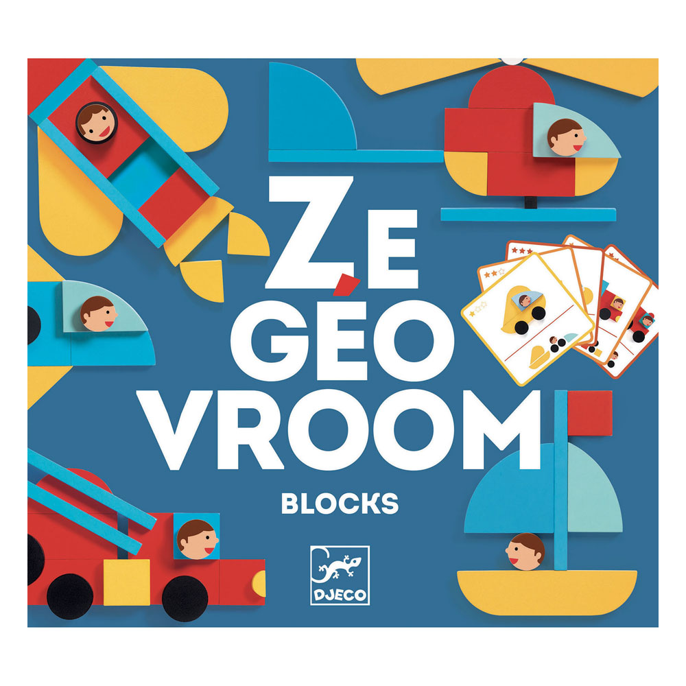 Το σετ περιλαμβάνει 33 χρωματιστά ξύλινα κομμάτια σε διάφορα γεωμετρικά σχήματα και 20 κάρτες – πρότυπα οχημάτων με 3 επίπεδα δυσκολίας σύμφωνα με τα αστέρια της κάθε κάρτας.