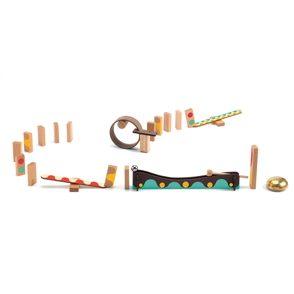Αυτό το σετ που αποτελείται από 25 κομμάτια με ξύλινα ντόμινο, μπάλες και άλλα ιδιαίτερα εξαρτήματα θα εμπνεύσει την δημιουργικότητα των παιδιών και θα τους δημιουργήσει δεξιότητες όπως η επιμονή, η επίλυση προβλημάτων STEM και η κριτική σκέψη.