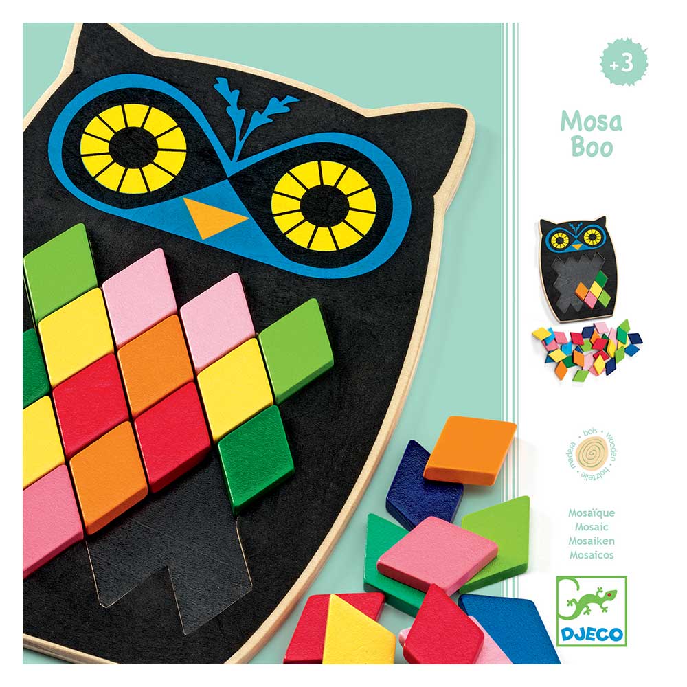 Το σετ περιλαμβάνει ένα ταμπλό κουκουβάγια, 57 ξύλινους ρόμβους και 10 κάρτες που μπορούν να βοηθήσουν τα παιδιά στις πρώτες τους προσπάθειες.