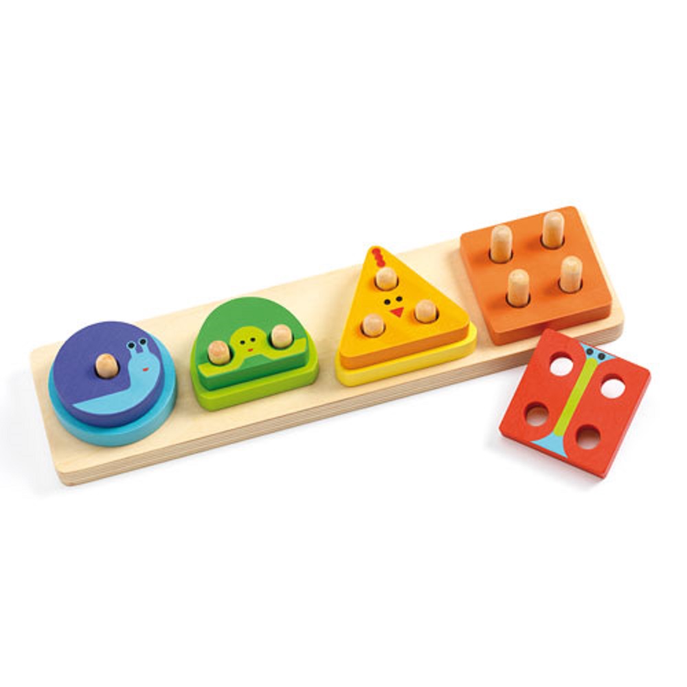 Ξύλινο παζλ από την εταιρεία Djeco με πρωτότυπο σχεδιασμό, που θα ενθουσιάσει τους μικρούς μας φίλους και θα τους βοηθήσει στην εκμάθηση των βασικών σχημάτων.