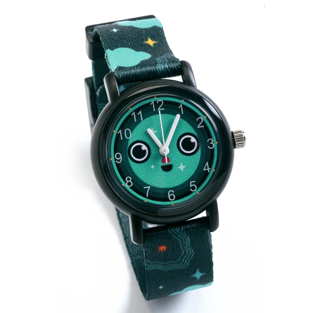 Υπέροχο παιδικό ρολόι χειρός από την εταιρεία Djeco με υφασμάτινο λουράκι και χαριτωμένο σχέδιο.