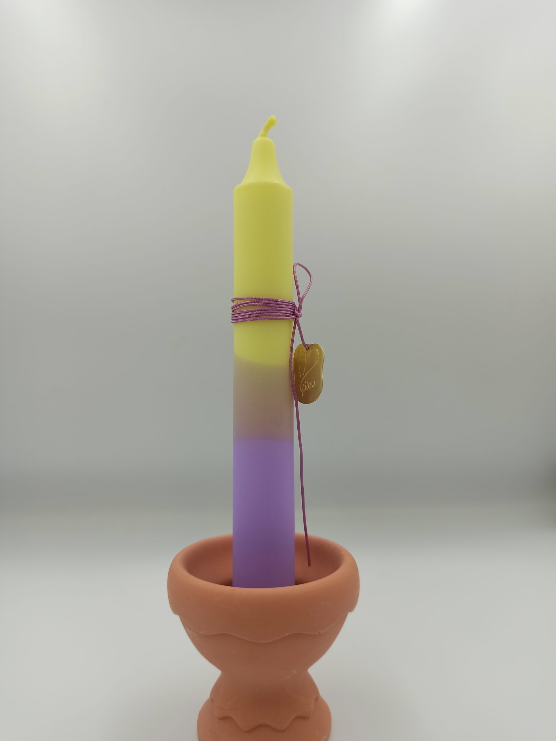 Λαμπάδα Κερί Κίτρινο Μωβ Με Μεταλλικό Στοιχειο