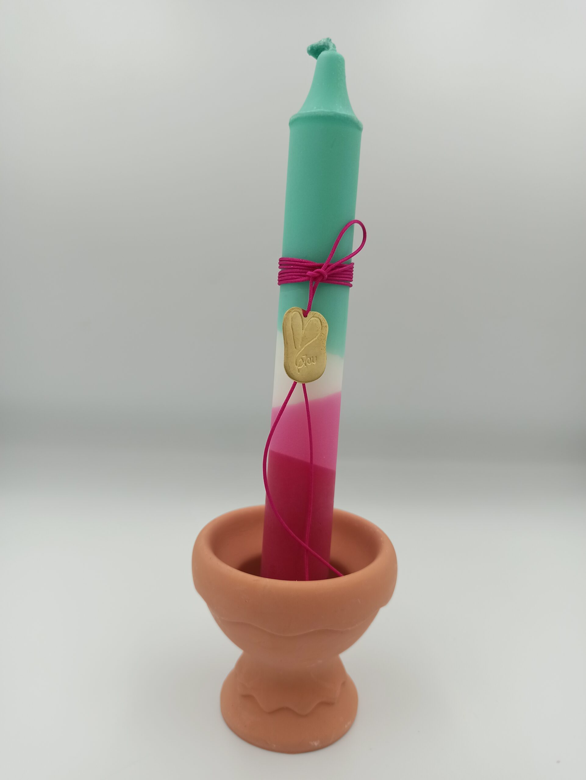 Λαμπάδα Κερί Φούξια Μεντα Με Μεταλλικό Στοιχειο